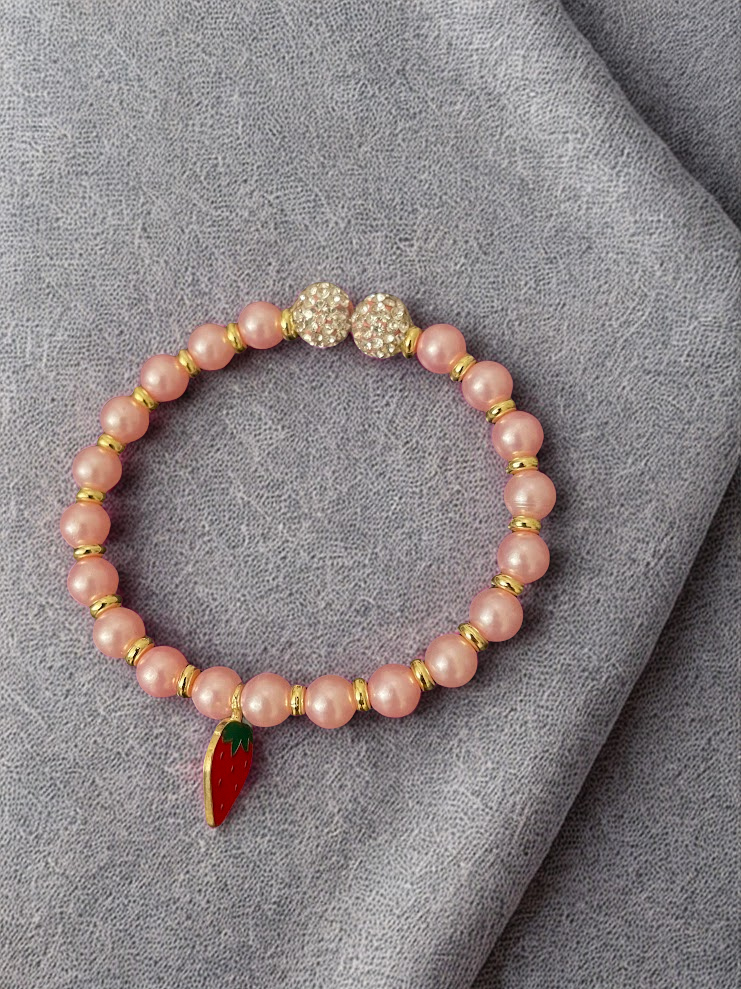 Strawberry Kiss Bracelet: Featuring glossy pink pearls accented with gold-tone spacers and a cute enamel strawberry charm, this bracelet brings a fun, fruity vibe to your wrist.